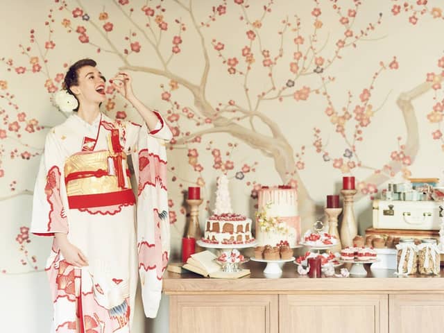 壁には梅のアートワークをご用意。