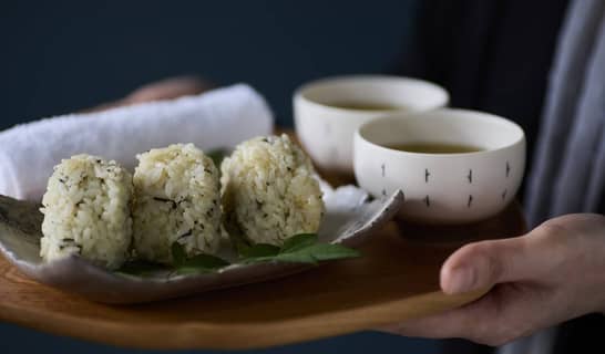 日本茶と同じ茶葉で炊いたおにぎりをご提供。