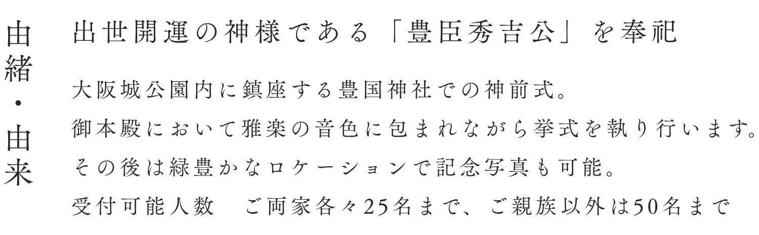 豊國神社は同じ敷地内にある為、ゲストの皆様も徒歩で移動でき、