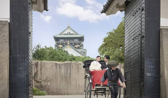 おふたりには人力車をご用意。